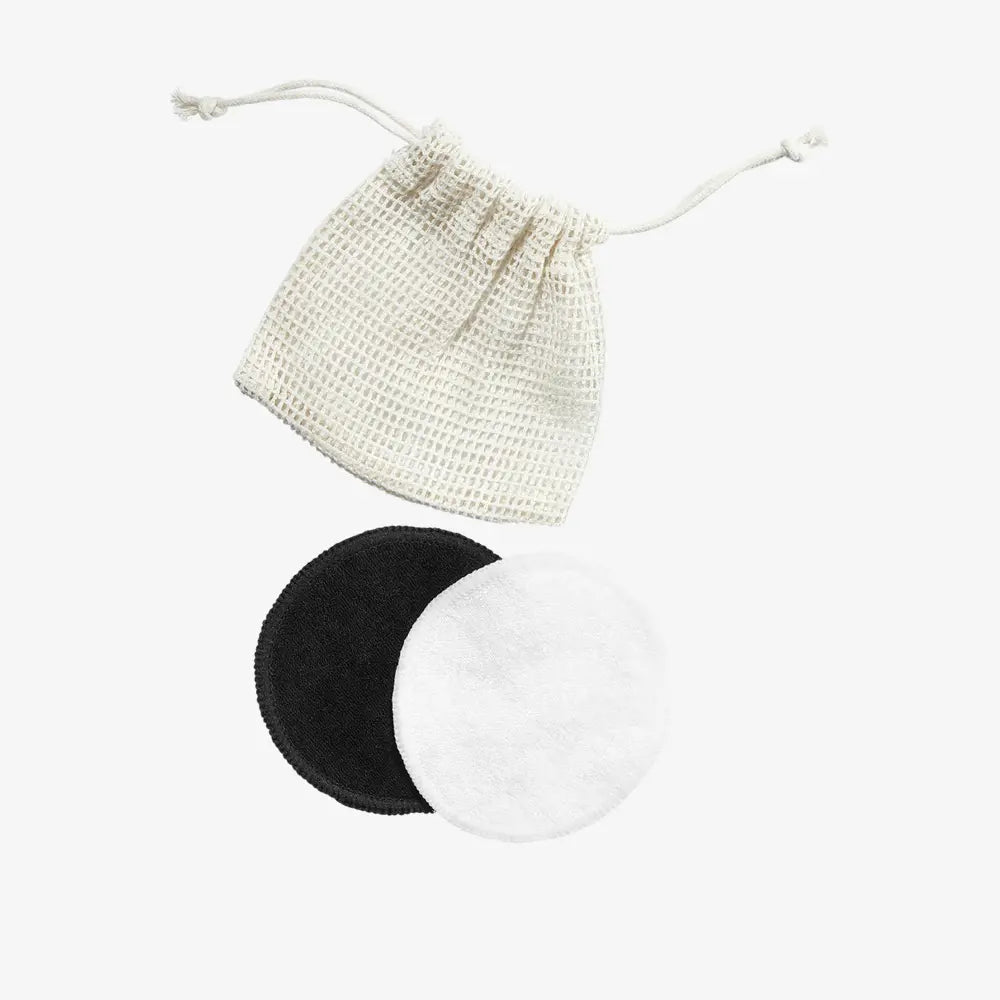 За поодржлива рутина за убавина, смени ги влошките за еднократна употреба за алтернатива за повеќекратна употреба. Влошките во овој сет во дуо-бои се направени од мешавина од памук и природни бамбусови влакна – познати по своите антибактериски својства – и испорачани во мрежеста торбичка за носење, погодна за машината за перење. Користи ја црната влошка за потемна шминка, а белата влошка за тонери и средства за чистење.