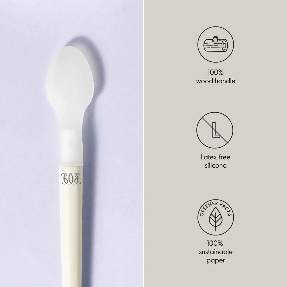 Оваа силиконска шпатула за крем без латекс го прави нанесувањето на хидратантниот крем лесно, пријатно и похигиенско. Нема повеќе валкани прсти од твоите сакани тегли за нега на кожа. Препушти се на посензорна и професионална рутина за нега на кожата, давајќи си го заслуженото време.
